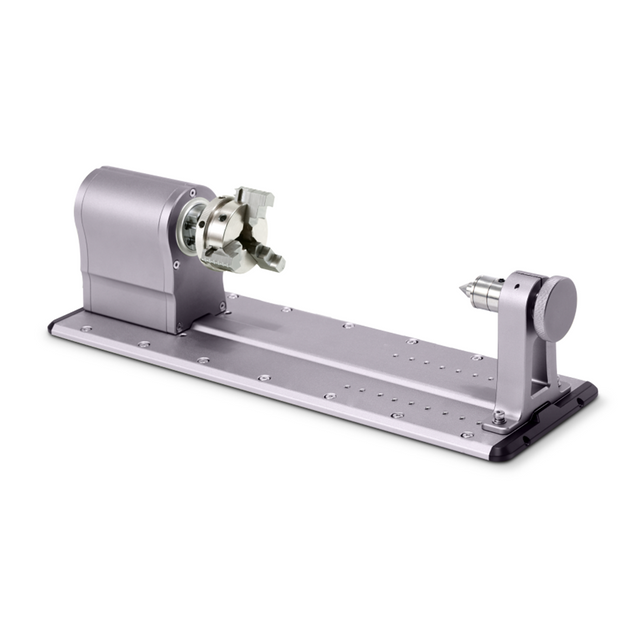 The 3-jaw chuck ensures firm clamping of cylindrical materials, improving stability and accuracy during rotation for consistent engraving results.