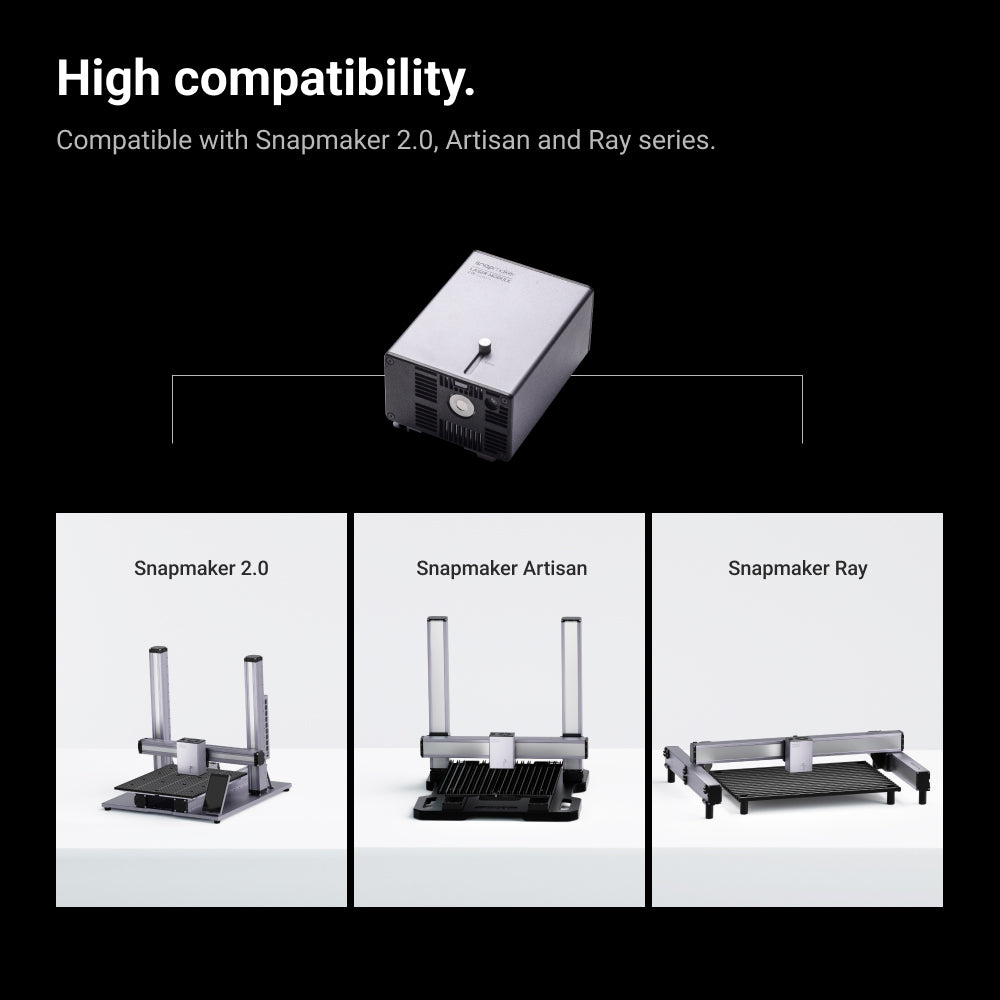 The Snapmaker 1064nm Infrared Laser Module is compatible with the Snapmaker 2.0(A150/A250/A250T/F250/A350/A350T/F350), Artisan, Ray.